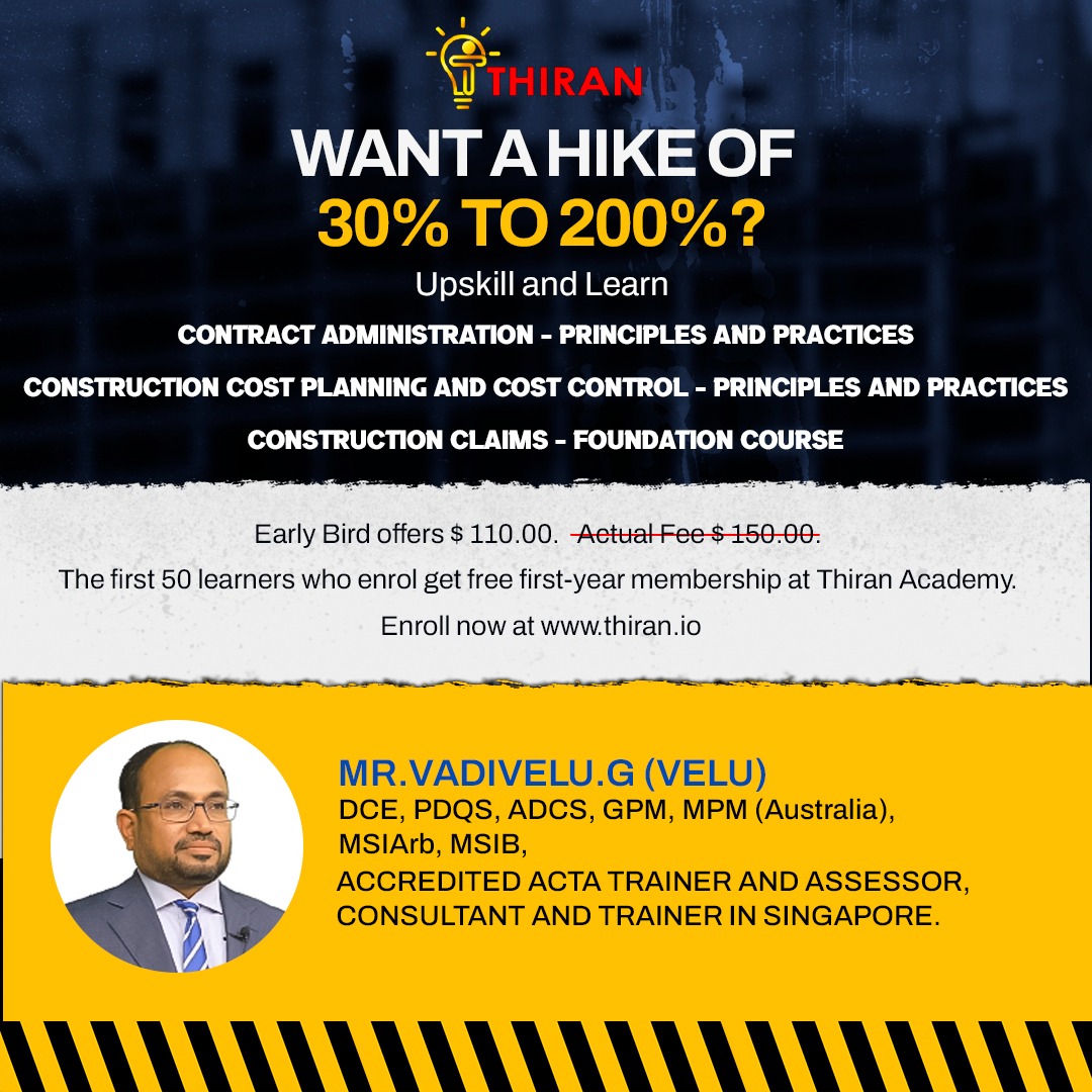 Master in-demand Quantity Surveying, Contract Administration and Contract Management skills and advance your career. Our Thiran platform's blended learning program combines the flexibility of online learning with expert-led guidance.